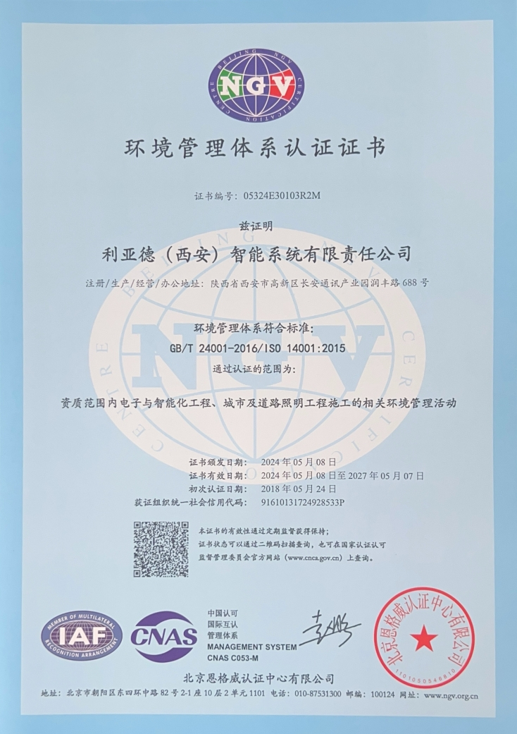 环境管理体系认证证书